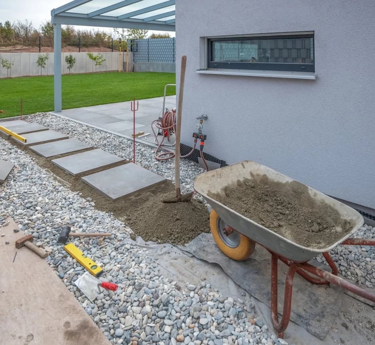 Nous réalisons les travaux de fondation nécessaires à vos futurs aménagements : dalles béton pour terrasses, abris de jardin ou spas, ainsi que la création de marches et d'escaliers extérieurs. Une préparation rigoureuse des sols garantit la stabilité de vos structures face au temps et aux intempéries.